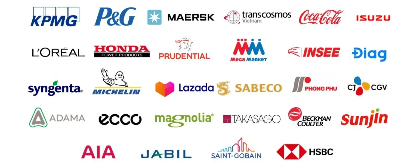 Wall Street English tự hào là đối tác tin cậy cung cấp giải pháp nâng cao trình độ Anh ngữ cho nhân viên của nhiều doanh nghiệp và công ty đa quốc gia tại Việt Nam như: Honda Power Products, P&G, Sunjin, Michelin, Syngenta, INSEE Việt Nam, Prudential, Coca Cola, v.v.